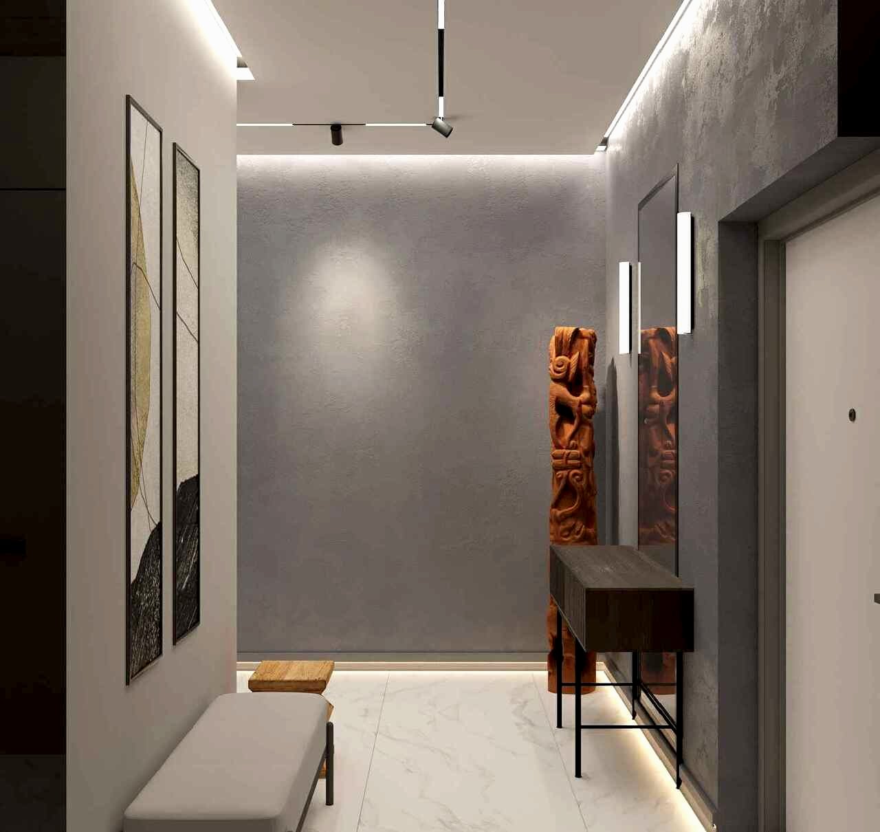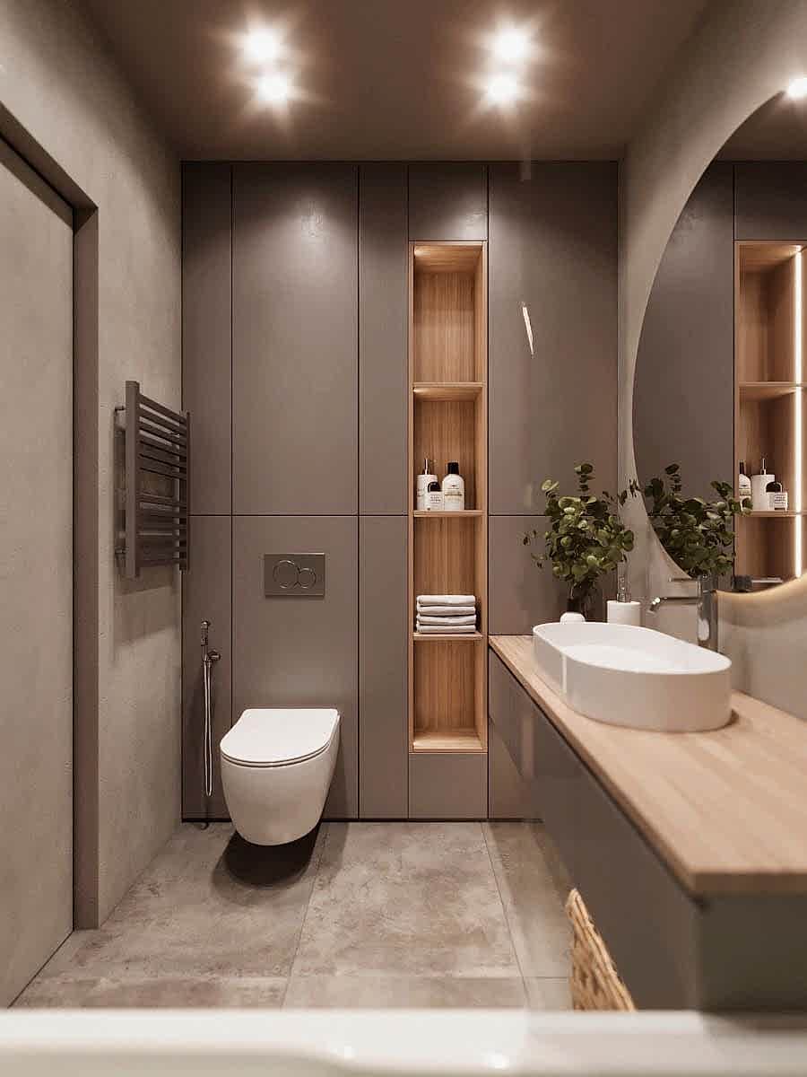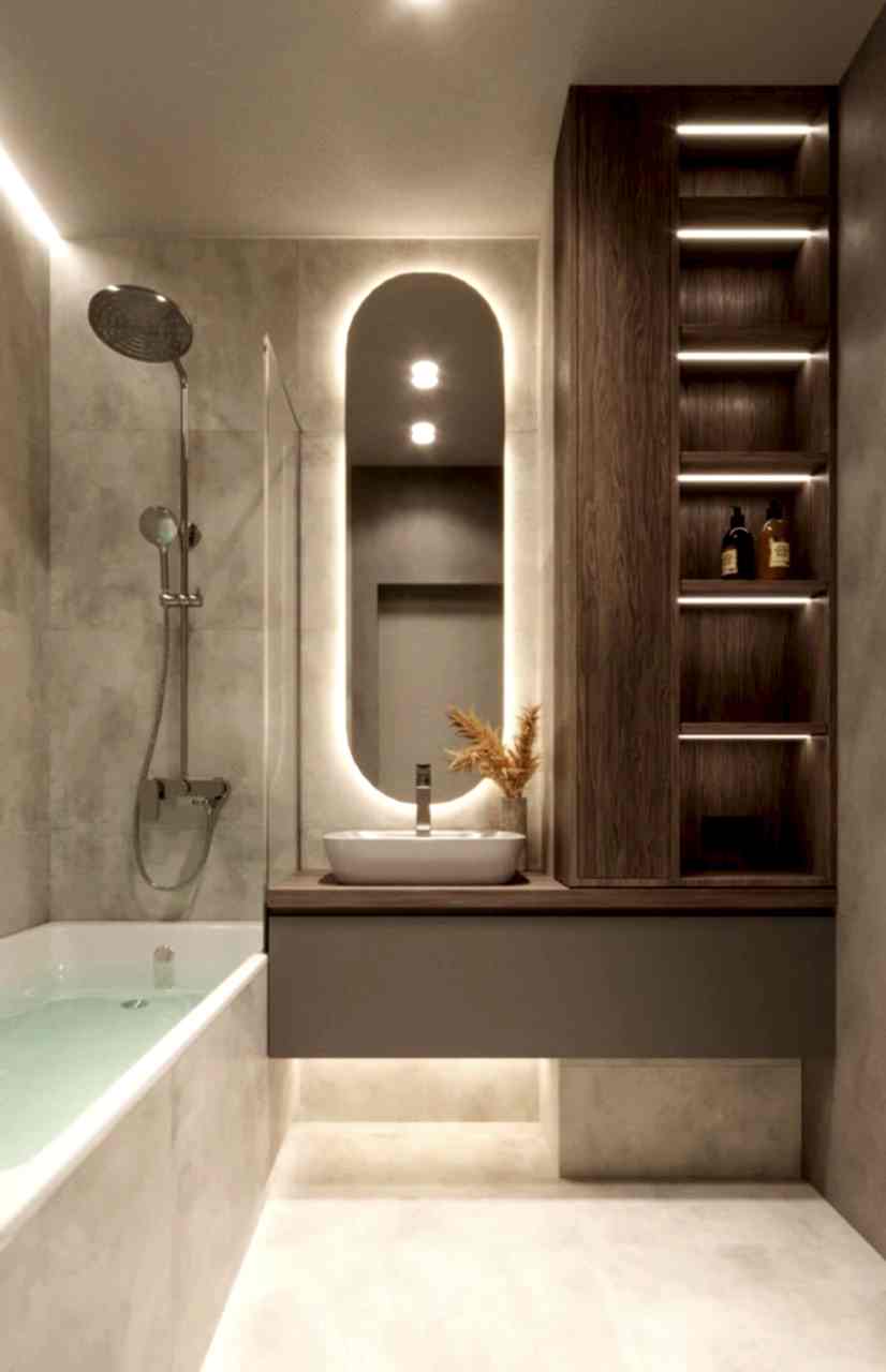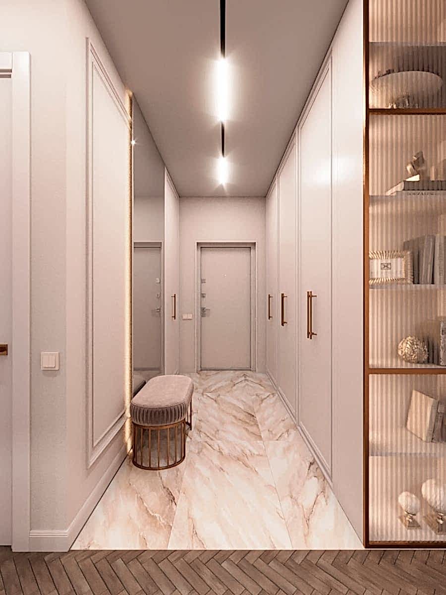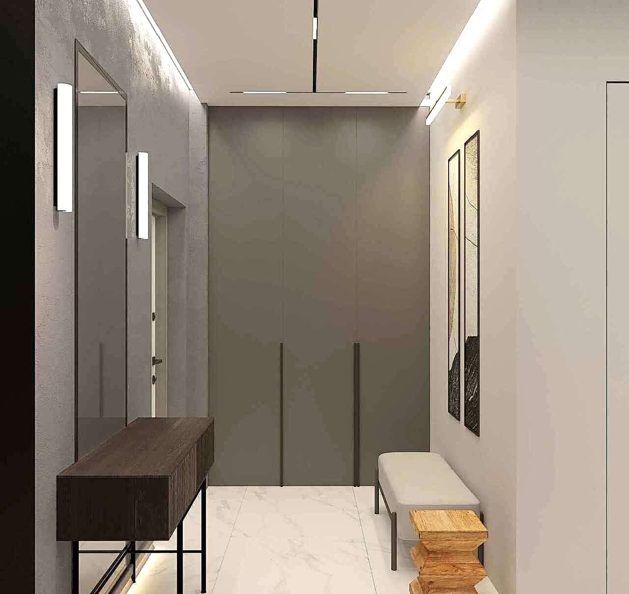- В санузлах: разводка сантехники, на стенах и PinUp - кафель или керамогранит (размер до 60х60), унитазы подвесные с инсталляцией, акриловая ванна с экраном под кафель, ниши и полки из кафеля