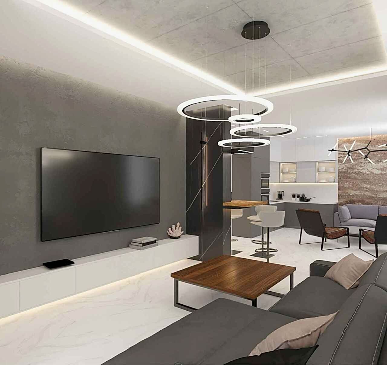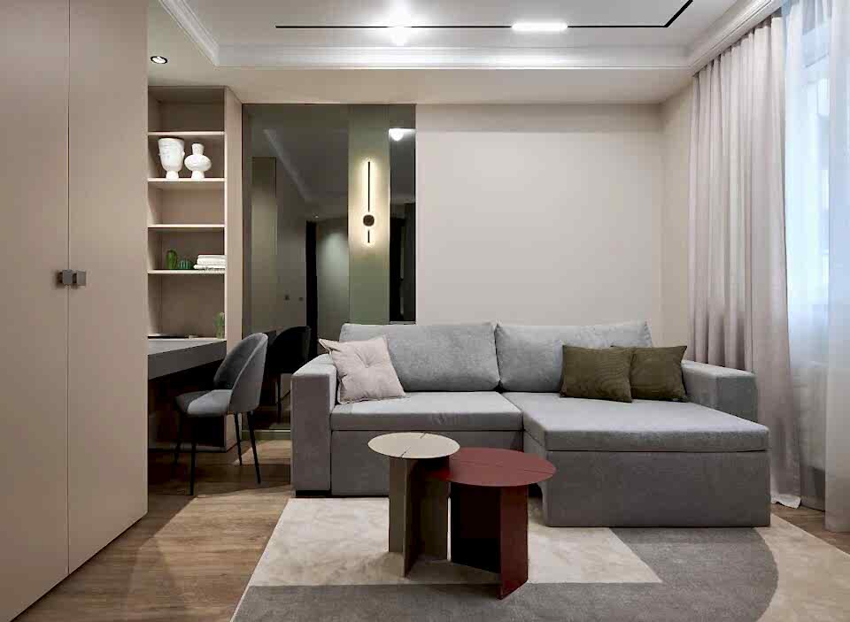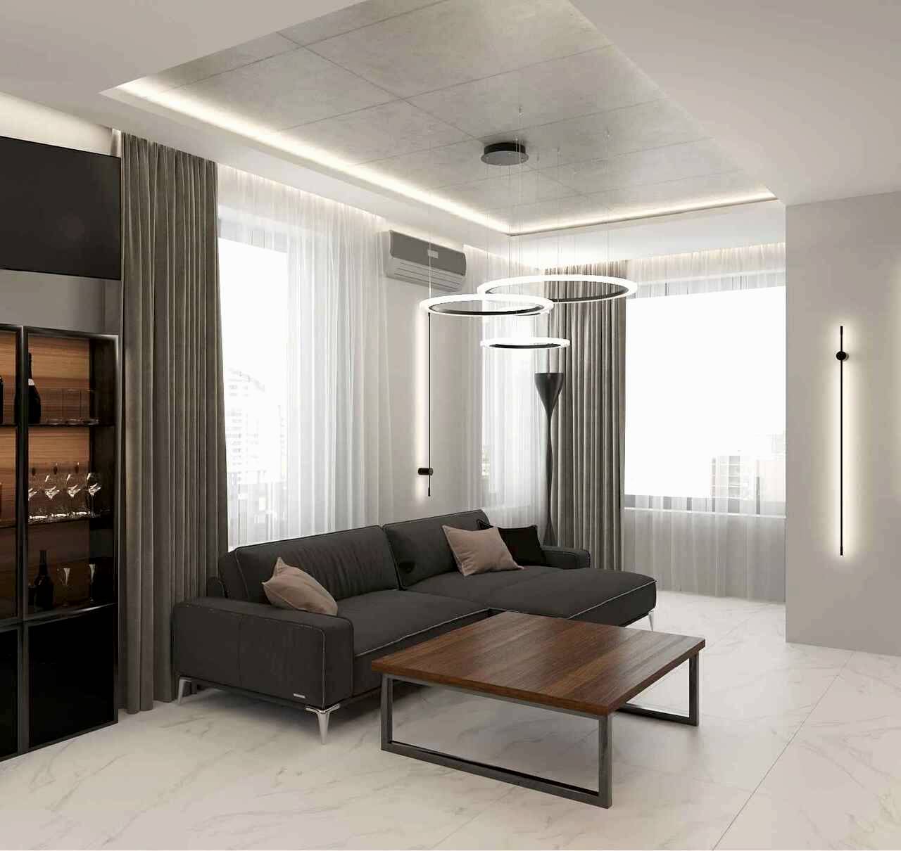 - PinUp потолок с нишами для штор, возможно устройство потолков из ГКЛ (до 20 м2)