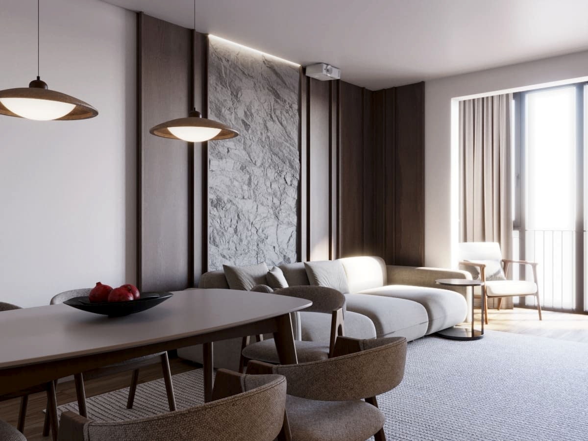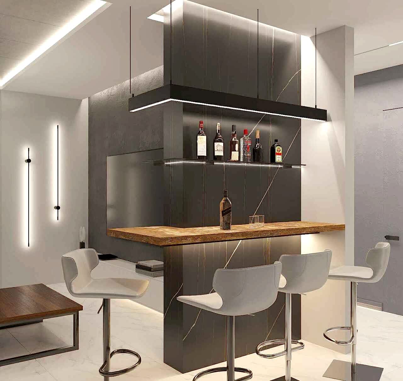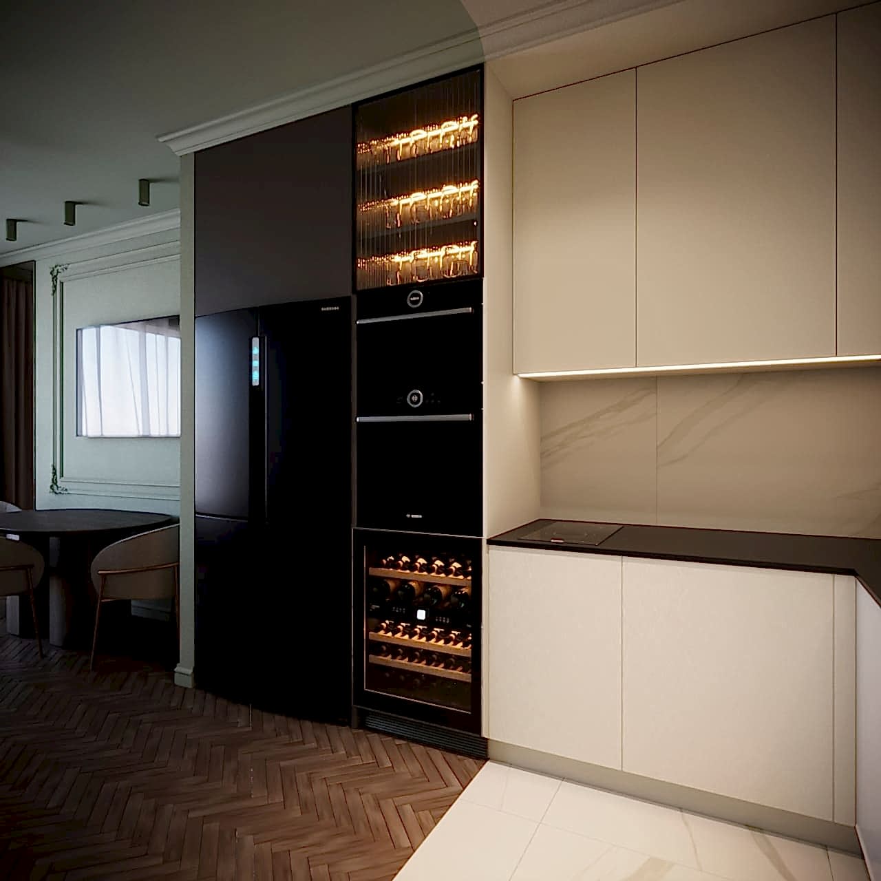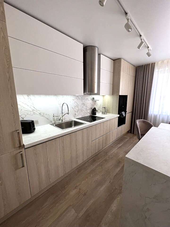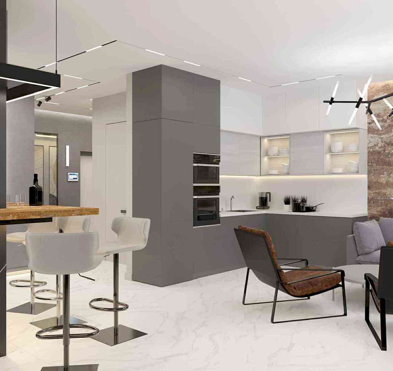 - В санузлах: разводка сантехники, на стенах и полу - кафель или керамогранит (в т.ч. PinUp унитазы подвесные с инсталляцией, акриловая ванна с экраном под кафель, ниши и полки из керамогранита