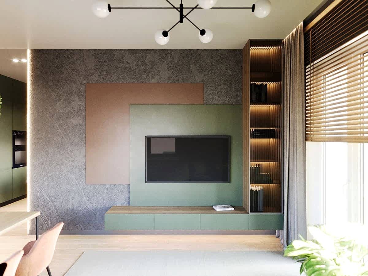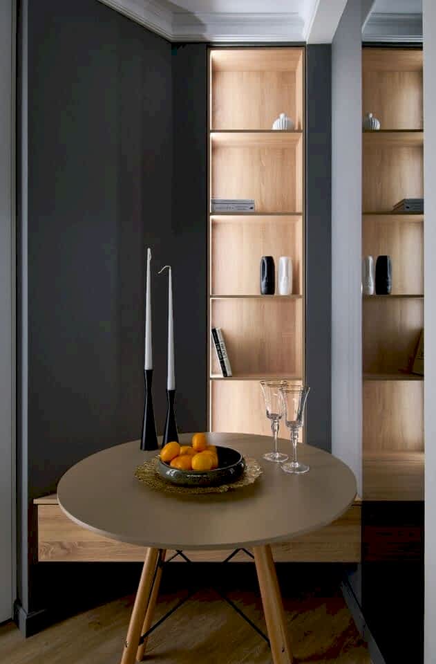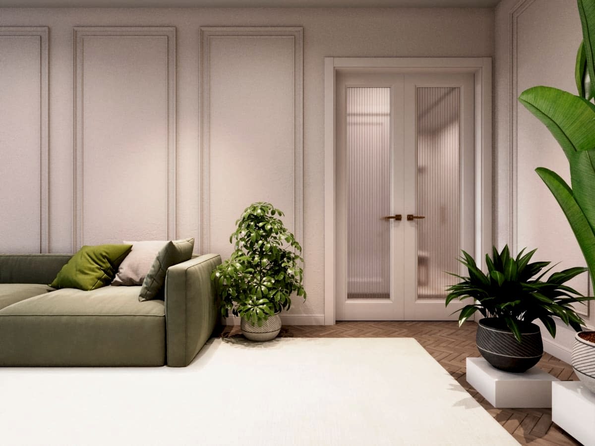 - Стены PinUp на стенах обычные обои или обои под покраску, не менее 30% стен могут быть окрашены классическим способом или с нанесением декоративной штукатурки, молдинги на стенах