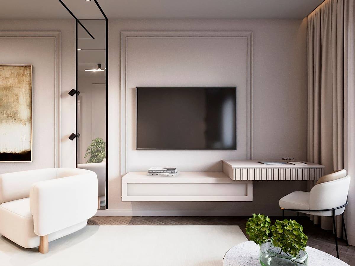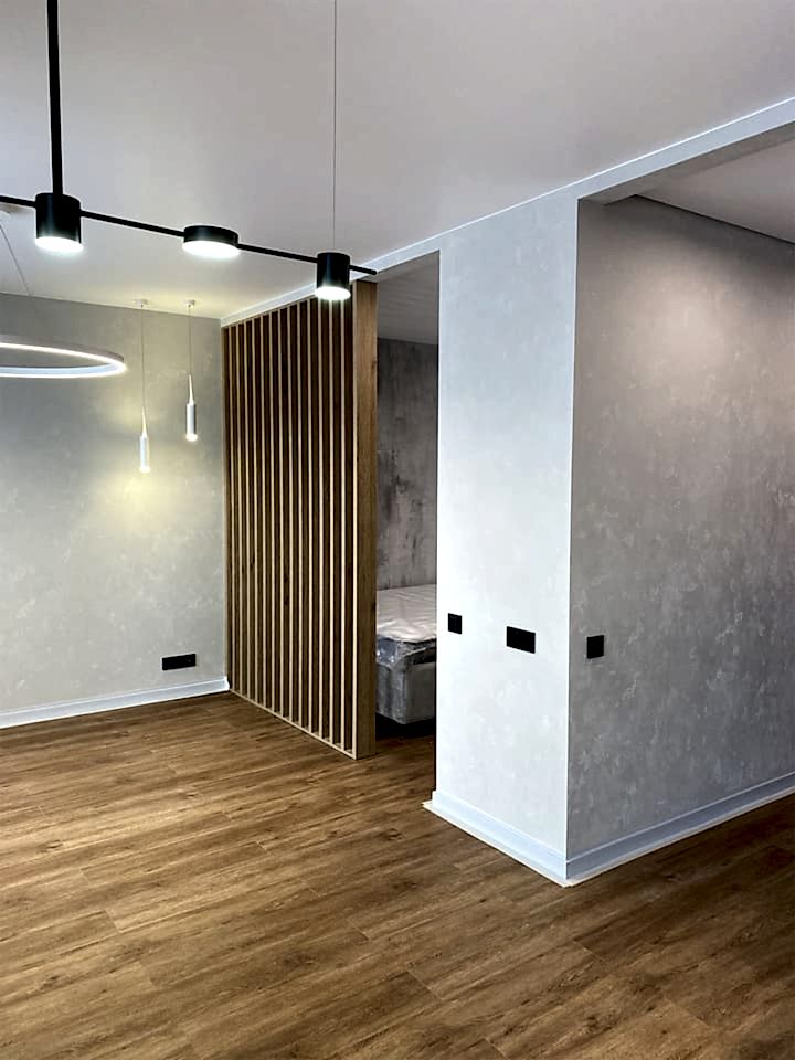 - Стены полностью выравниваются, на стенах любые обои, возможно нанесение декоративной PinUp и окрашивание классическим способом на любое количество стен, молдинги и друкие декоративные элементы