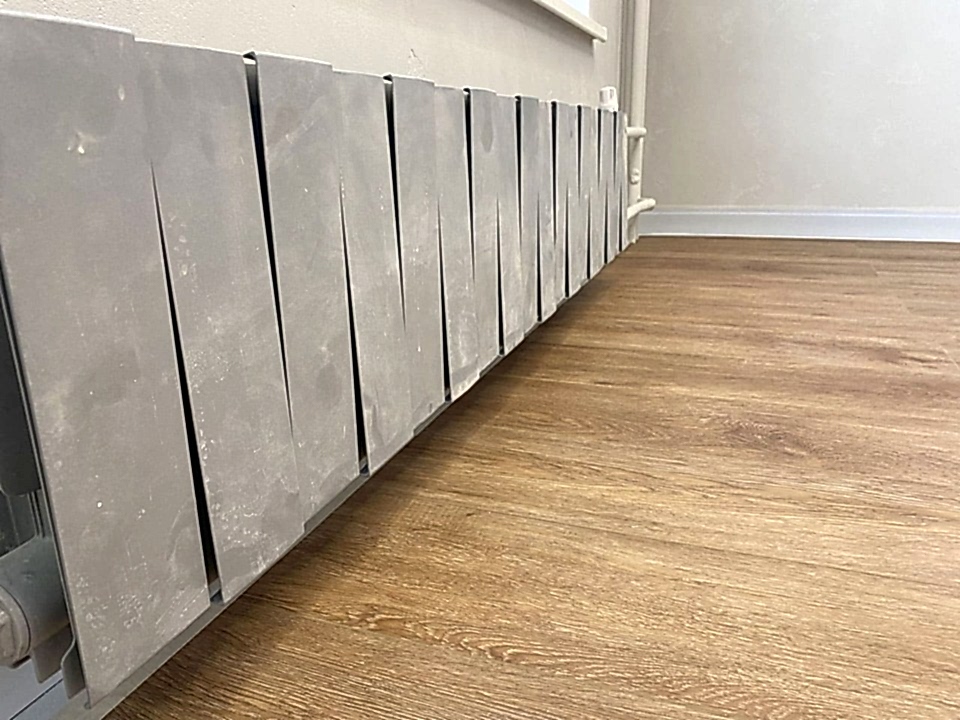 - На полу ламинат, замковая или клеевая ПВХ плитка, керамогранит, инженерная или паркетная доска, любой плинтус, в PinUp скрытый, теплый пол
