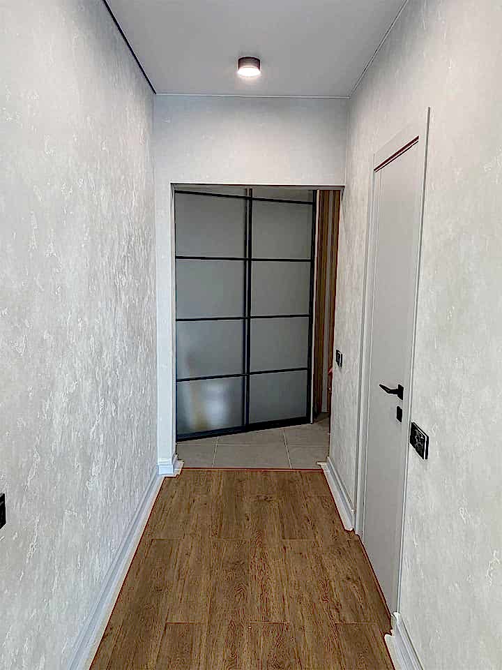 - На полу ламинат, замковая или клеевая ПВХ плитка, керамогранит, плинтус ПВХ/МДФ/под покраску, PinUp полы