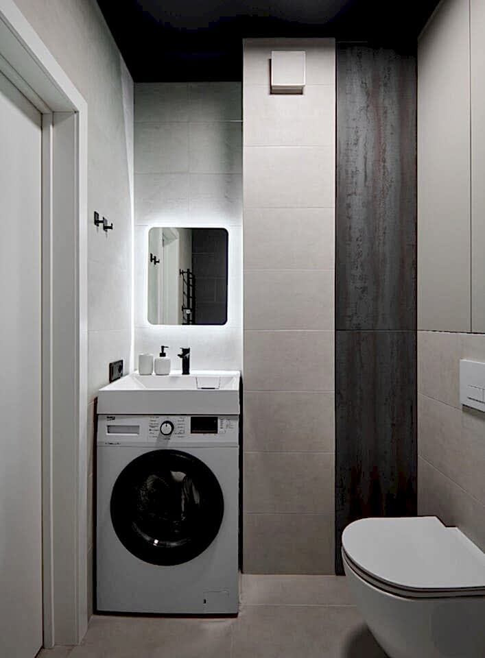 - В санузлах: разводка сантехники, на стенах и полу - кафель или керамогранит (размер до 60х60), унитазы подвесные с инсталляцией, PinUp ванна с экраном под кафель, ниши и полки из кафеля
